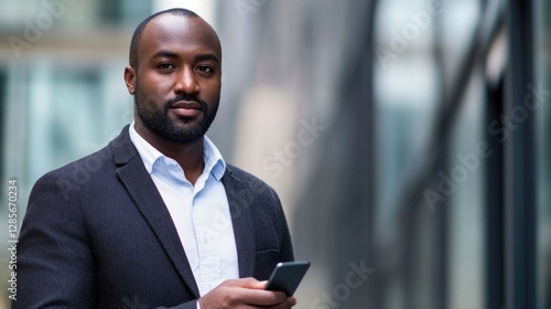 Portrait of a Confident Black Businessman Holding a Smartphone