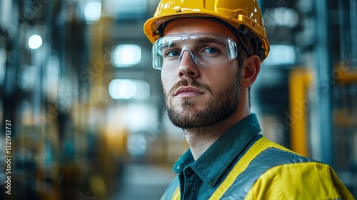 Portrait of a confident industrial worker wearing safety gear in factory setting
