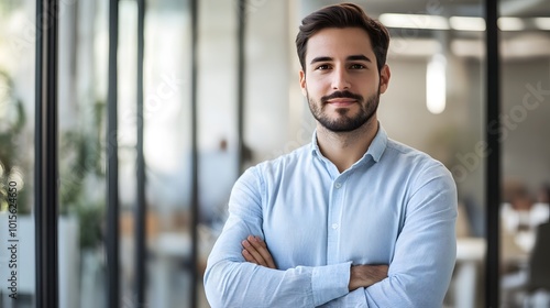 Portrait of a Confident Man in a Blue Shirt in an Office Setting