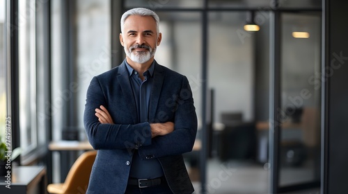 Portrait of a Confident Middle-Aged Man in a Blue Blazer