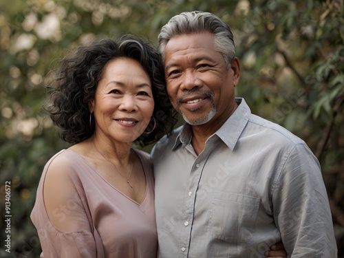 Portrait of a couple of black man from Africa and white woman from Asia, individuals of different races