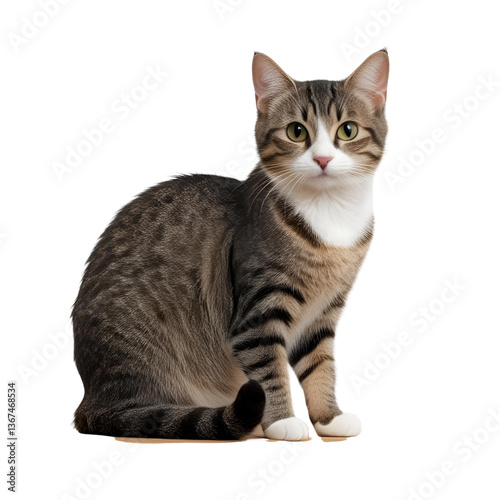 Portrait of a cute British cat sitting on a white background, isolated and looking adorable with fluffy fur