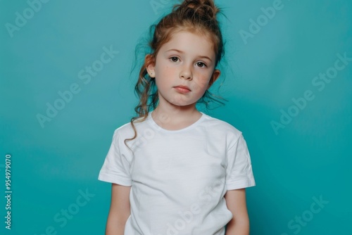 Portrait of a cute female child against green background