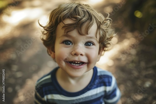 Portrait of a cute little boy in the park. Closeup