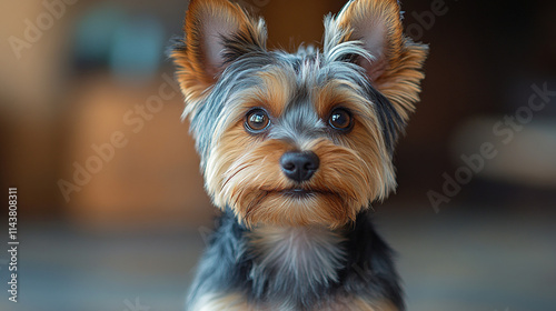 Portrait of a cute Yorkshire Terrier on Minimalist Background