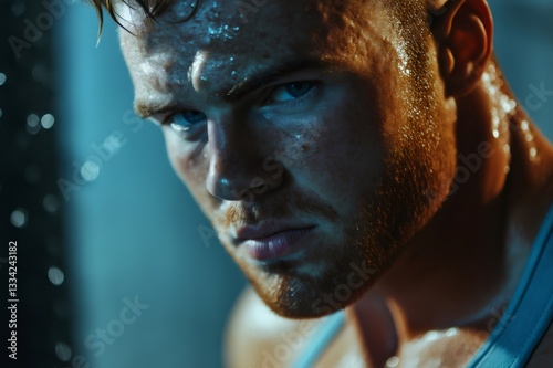 Portrait of a determined sportsman sweating after an intense training session, showing resilience and dedication