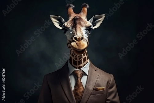 Portrait of a Giraffe dressed in a formal business suit, generative AI