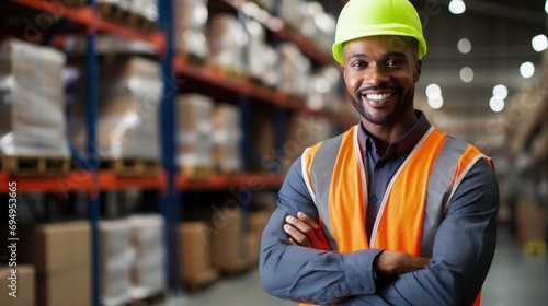 Portrait of a Handsome and Happy Professional Worker Wearing Safety Vest and Hard Hat Smiling