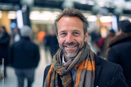 Portrait of a handsome mature man in the train station. Shallow depth of field.