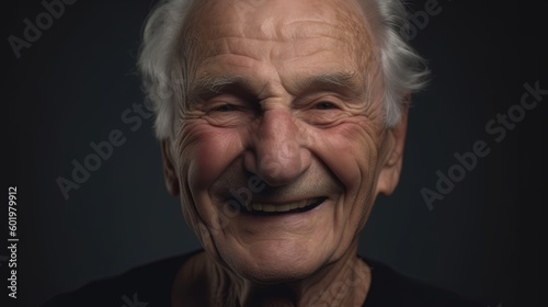 Portrait of a happy senior man smiling at the camera on a dark background.Generative Ai