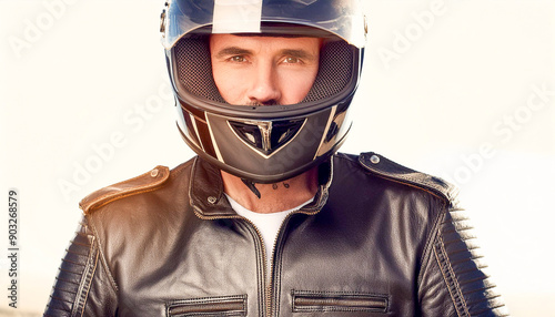 Portrait of a helmeted motorcyclist