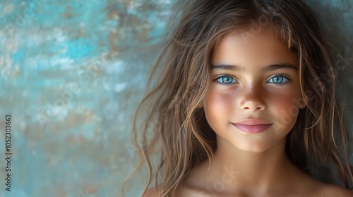 portrait of a joyful young girl from portugal, radiating happiness with a candid smile against a simple, solid background, capturing the essence of youth and cultural identity