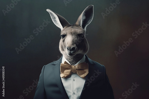 Portrait of a Kangaroo dressed in a formal business suit, generative AI