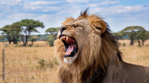 portrait of a lion animal theme in nature and sunset meaning leadership and power