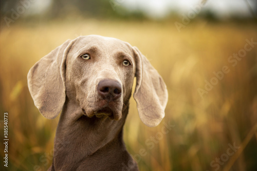 Portrait of a long hair Weimaraner in the Field