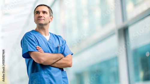portrait of a male doctor surgeon specialist The dedication of medical staff captured in a moment of quiet intensity