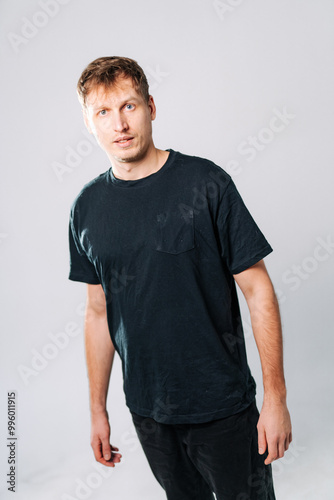 Portrait of a man in a casual black shirt indoors.