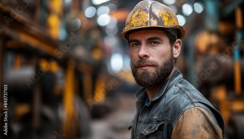 Portrait of a man in industrial setting with helmet