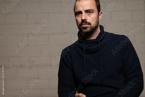 portrait of a man on a brick wall