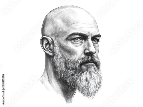 Portrait of a man with a beard and a bald head in profile view, cut out