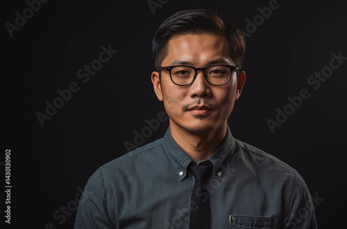 Portrait of a man with glasses against a dark background.