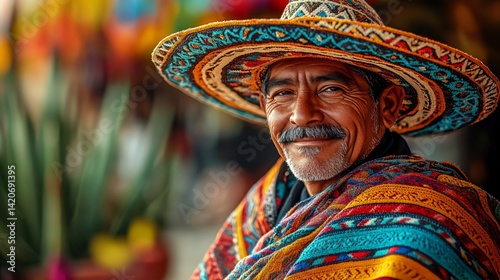 Portrait of a mature indigenous man in traditional attire, ideal for showcasing cultural celebrations, festivals, and warm community gatherings. Perfect for diversity and heritage themes.