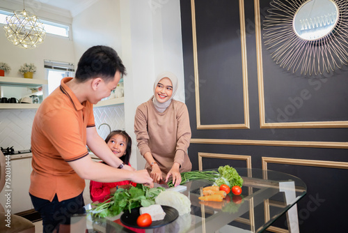 Portrait of a Muslim family preparing food