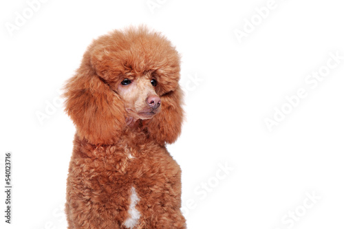 Portrait of a pretty brown poodle looking to the side close-up picture