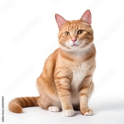 Portrait of a red cat on a white background. Created with Generative AI tools