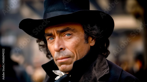 Portrait of a respectable middle-aged Victorian gentleman in a hat and coat on the street
