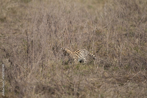 portrait of a serval cat in the serengeti national park, camouflaged serval cat, wildlife safari in tanzania