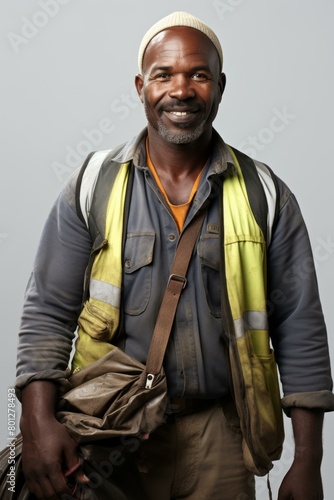 Portrait of a smiling African man wearing a hard hat and safety vest