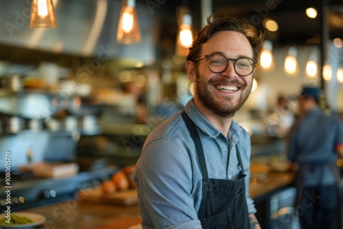 Portrait of a smiling American chef in restaurant kitchen