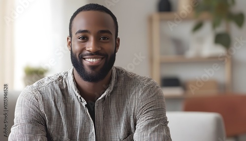 Portrait of a Smiling Black Man in a Checkered Shirt