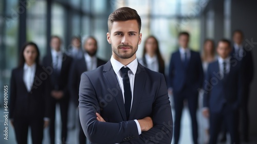 portrait of a smiling business person looking at camera with crossed arms in office. generative ai
