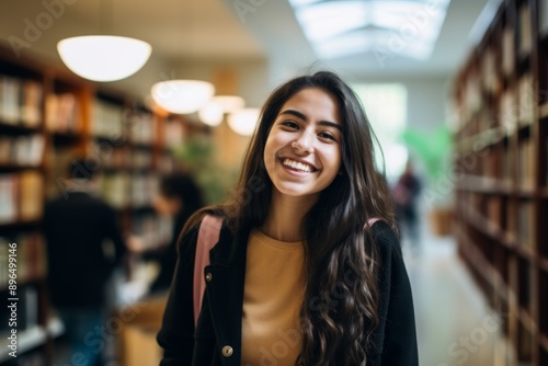 Portrait of a smiling female student in university library