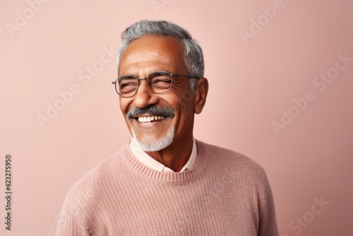 Portrait of a smiling Indian senior man with eyeglasses.