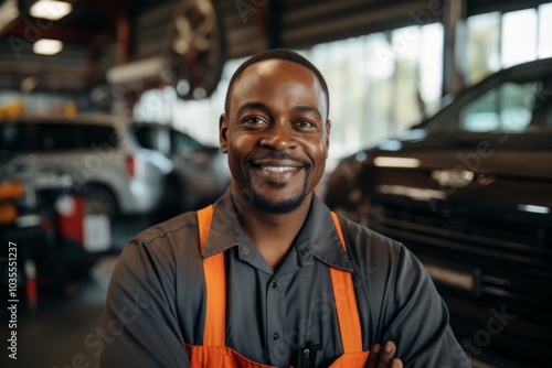 Portrait of a smiling middle aged African American car mechanic