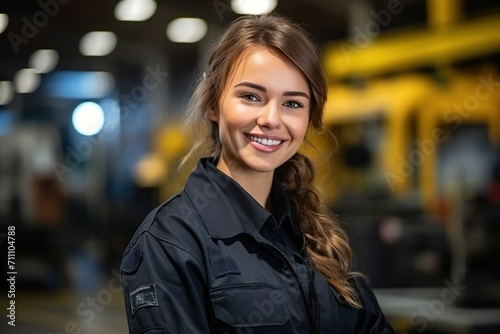 Portrait of a smiling young female engineer in a factory