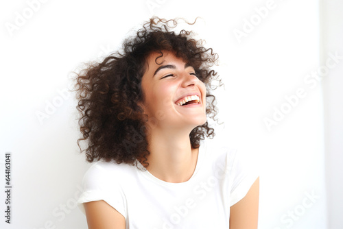 Portrait of a smiling young woman on a white background