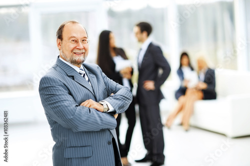 portrait of a successful businessman on background of office