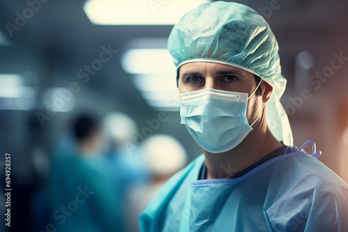 Portrait of a surgeon in a hospital, a man in surgical attire overseeing a medical care operation