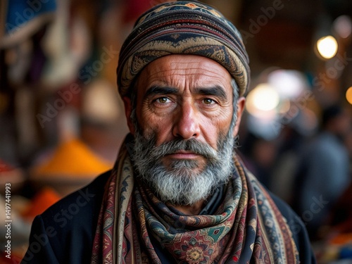 Portrait of a Turkmen Turkmenian older man in a traditional gown
