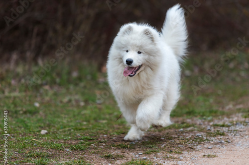 Portrait of a white Samoyed dog