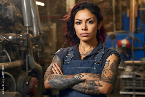 portrait of a woman confident factory worker with arms crossed