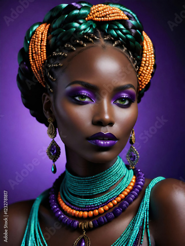 portrait of a woman with dreadlocks, multicolored decorations and makeup