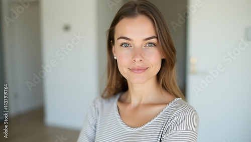 Portrait Of A Woman With Green Eyes And Brown Hair In A Casual Setting, portrait photography
