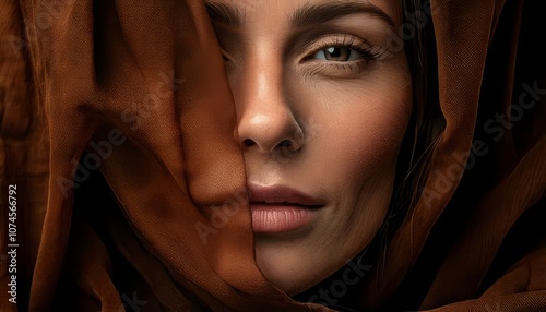 Portrait of a Woman with Warm Lighting and Brown Scarf