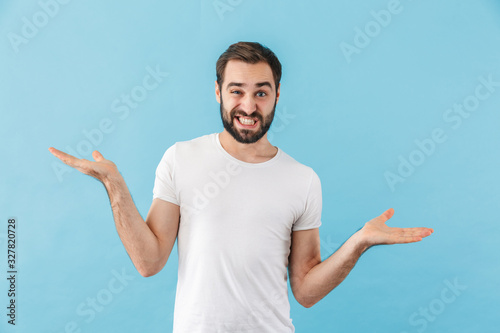 Portrait of a young cheerful bearded man wearing t-shirt