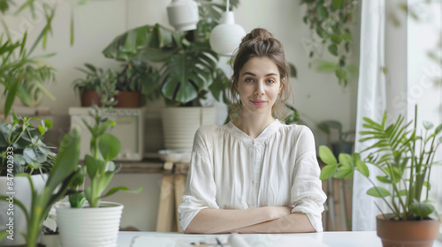 Portrait of a Young Girl in a White Dress Standing in a Lush Green Meadow